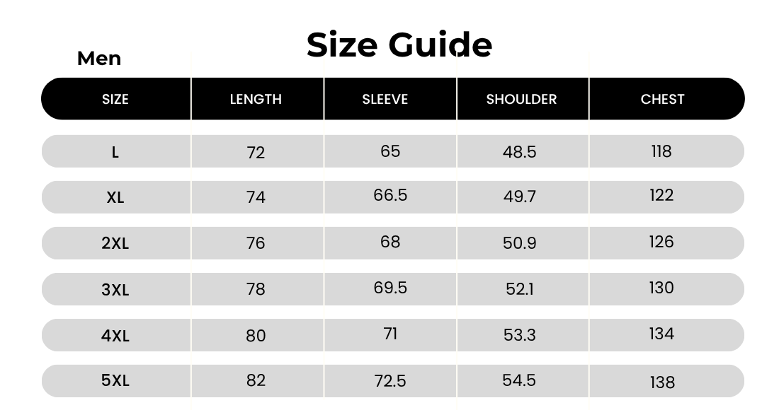 - Sizes: M–5XL or custom sizing options